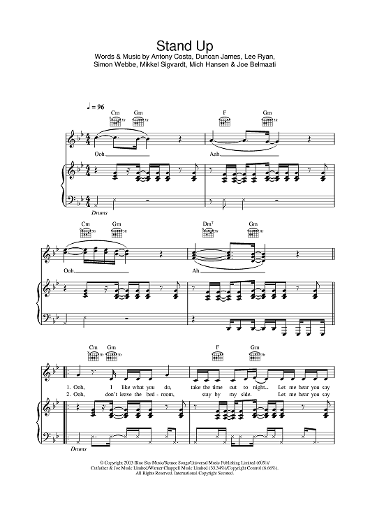 Digital Sheet Music for Stand Up by Blue scored for Piano/Vocal/Chords; id:378271