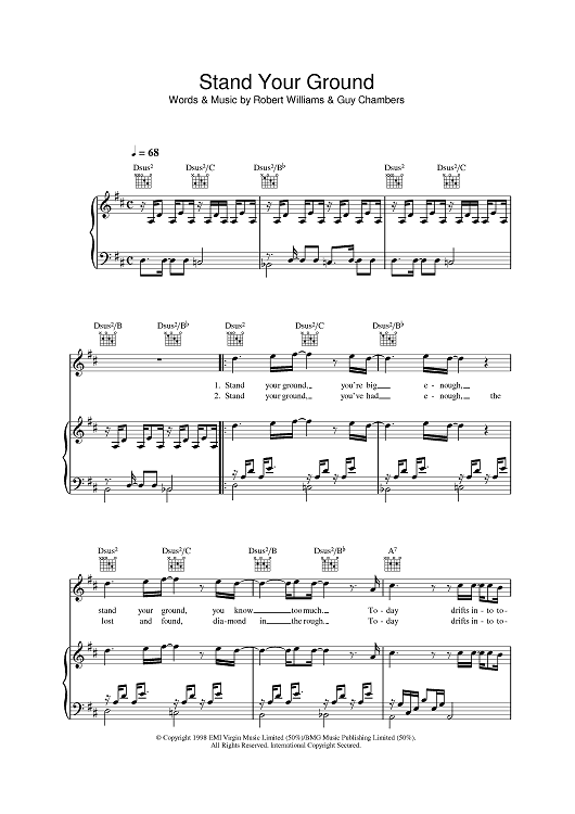 Digital Sheet Music for Stand Your Ground by Robbie Williams, Guy Chambers scored for Piano/Vocal/Chords; id:401262