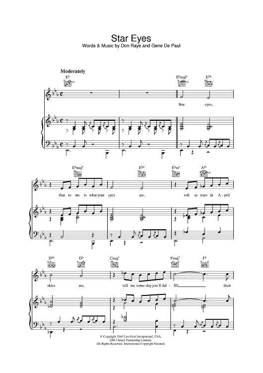 Digital Sheet Music for Star Eyes by Jimmy Dorsey, Don Raye, Gene De Paul scored for Piano/Vocal/Chords; id:401319