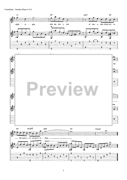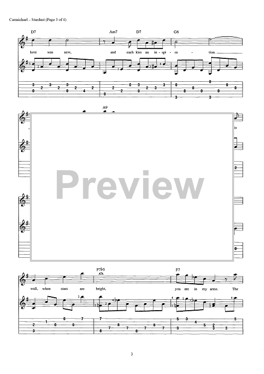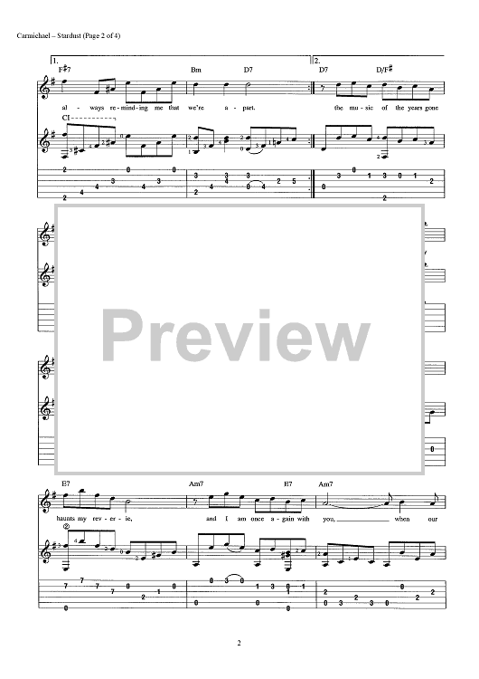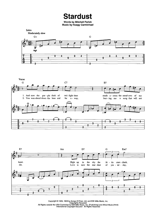 Digital Sheet Music for Stardust by Mitchell Parish, Hoagy Carmichael scored for Guitar Tab/Vocal/Chords; id:443541