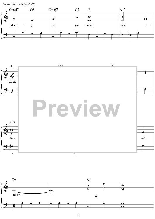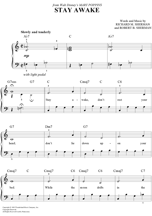 Digital Sheet Music for Stay Awake by Richard M. Sherman, Robert B. Sherman scored for Easy Piano/Vocal/Chords; id:453217