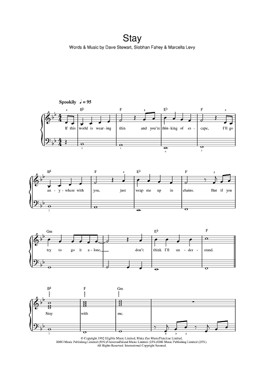 Digital Sheet Music for Stay by Siobhan Fahey, Dave Stewart, Marcella Levy, Shakespear's Sister scored for Piano/Vocal/Chords; id:393506