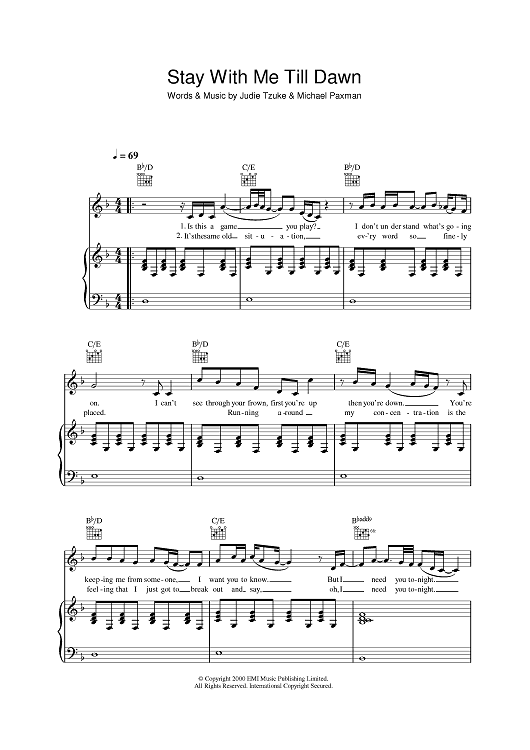 Digital Sheet Music for Stay With Me Till Dawn by Michael Paxman, Judie Tzuke scored for Piano/Vocal/Chords; id:401370