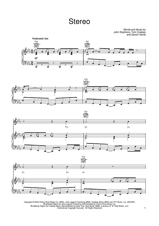 Digital Sheet Music for Stereo by John Legend, Tom Craskey, DeVon Harris scored for Piano/Vocal/Chords; id:396982