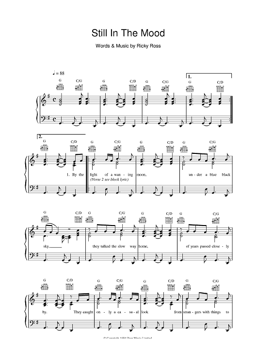 Digital Sheet Music for Still In The Mood by Deacon Blue scored for Piano/Vocal/Chords; id:375937