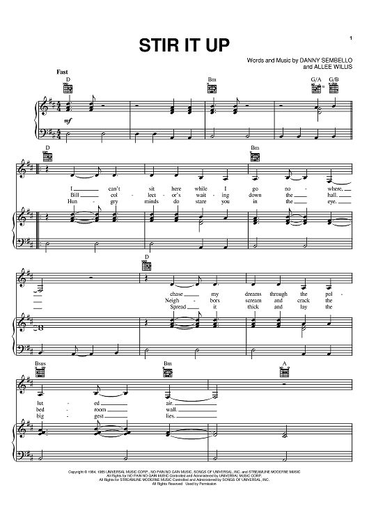 Digital Sheet Music for Stir It Up by Patti LaBelle, Danny Sembello, Allee Willis scored for Piano/Vocal/Chords; id:388587