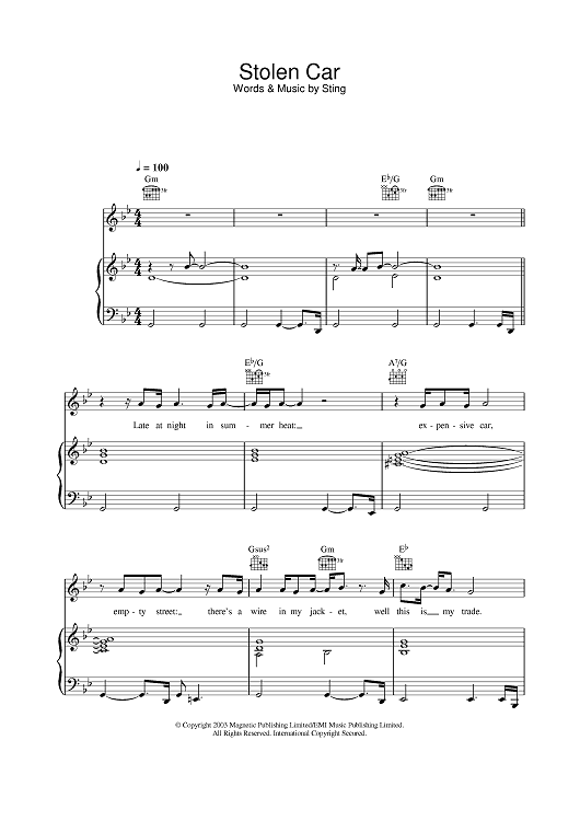 Digital Sheet Music for Stolen Car by Sting scored for Piano/Vocal/Chords; id:378181