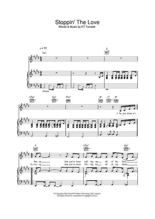 Digital Sheet Music for Stoppin' The Love by KT Tunstall scored for Piano/Vocal/Chords; id:385342