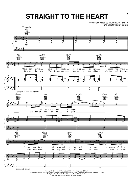 Digital Sheet Music for Straight To The Heart by Michael W. Smith, Brent Bourgeois scored for Piano/Vocal/Chords; id:395073