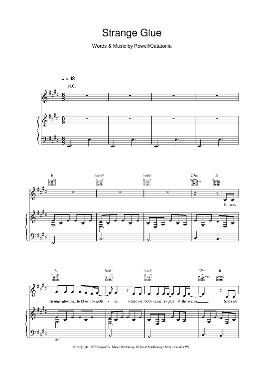 Digital Sheet Music for Strange Glue by Catatonia scored for Piano/Vocal/Chords; id:376686