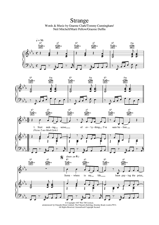 Digital Sheet Music for Strange by Wet Wet Wet scored for Piano/Vocal/Chords; id:376452