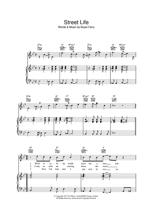 Digital Sheet Music for Street Life by Bryan Ferry, Roxy Music scored for Piano/Vocal/Chords; id:392167