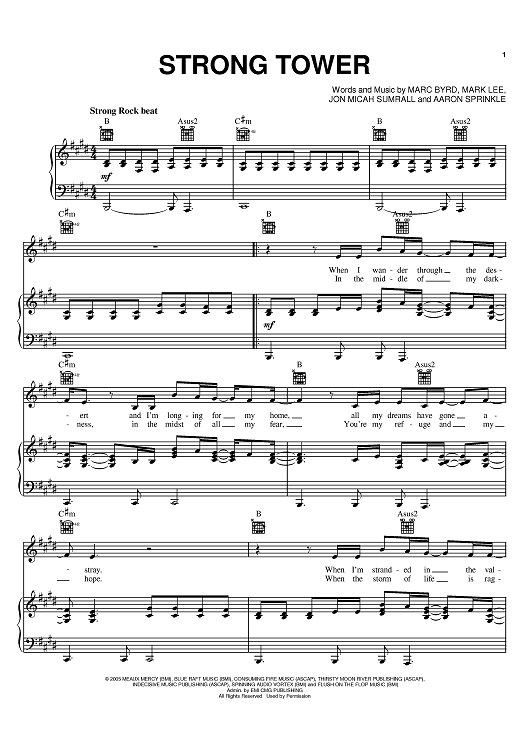 Digital Sheet Music for Strong Tower by Mark David Lee, Marc Byrd, Jon Micah Sumrall, Wild Boar, Kutless scored for Piano/Vocal/Chords; id:383871