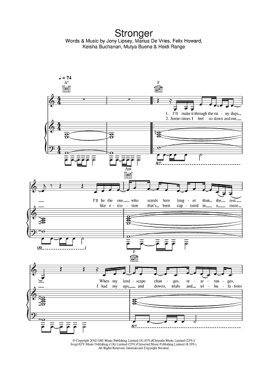 Digital Sheet Music for Stronger by Marius DeVries, Sugababes, Keisha Buchanan, Mutya Buena, Felix Howard, Heidi India Range, Jony Lipsey scored for Piano/Vocal/Chords; id:377960
