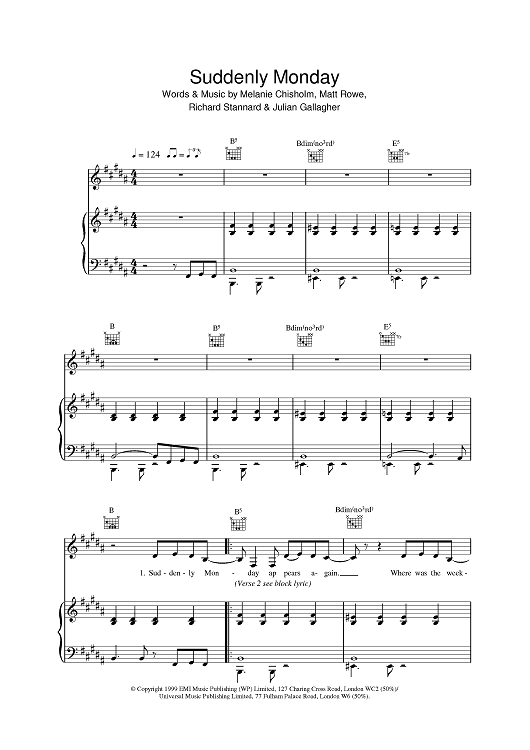 Digital Sheet Music for Suddenly Monday by Mel C scored for Piano/Vocal/Chords; id:376943