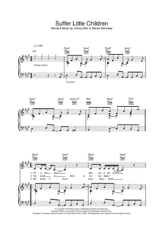 Digital Sheet Music for Suffer Little Children by Steven Morrissey, Johnny Marr, The Smiths scored for Piano/Vocal/Chords; id:398777