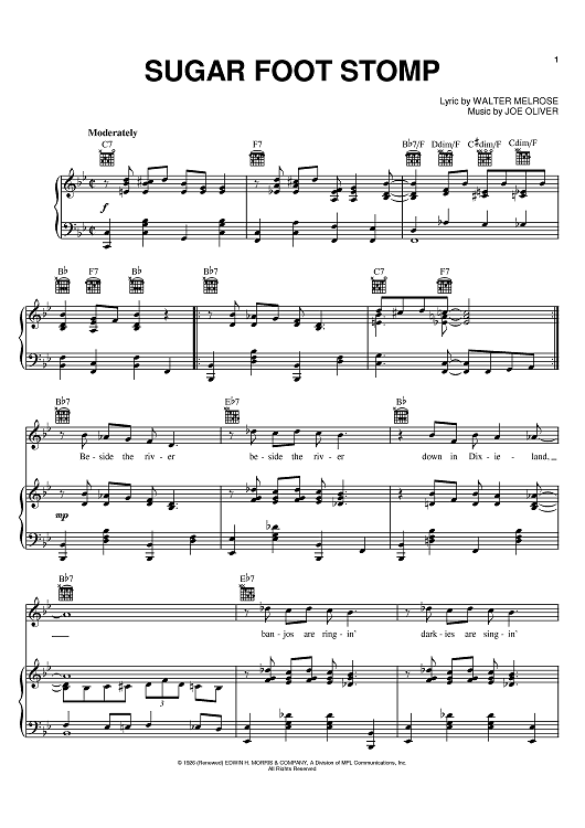 Digital Sheet Music for Sugar Foot Stomp by King Oliver, Walter Melrose, Fletcher Henderson scored for Piano/Vocal/Chords; id:384014