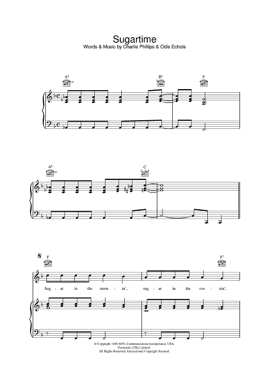 Digital Sheet Music for Sugartime by Linda McCartney, Odis Echols, Charlie Phillips scored for Piano/Vocal/Chords; id:389179