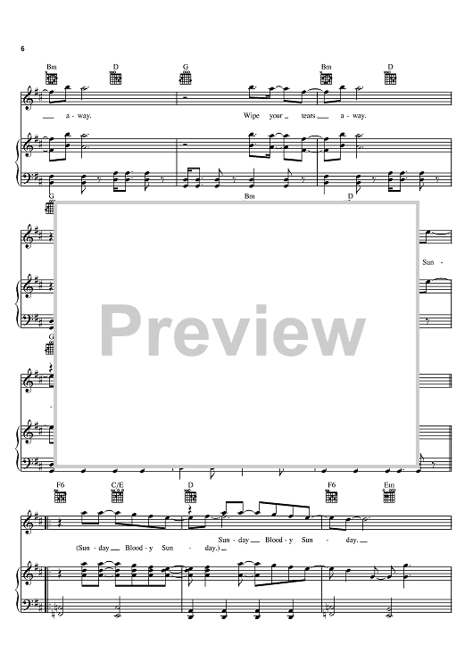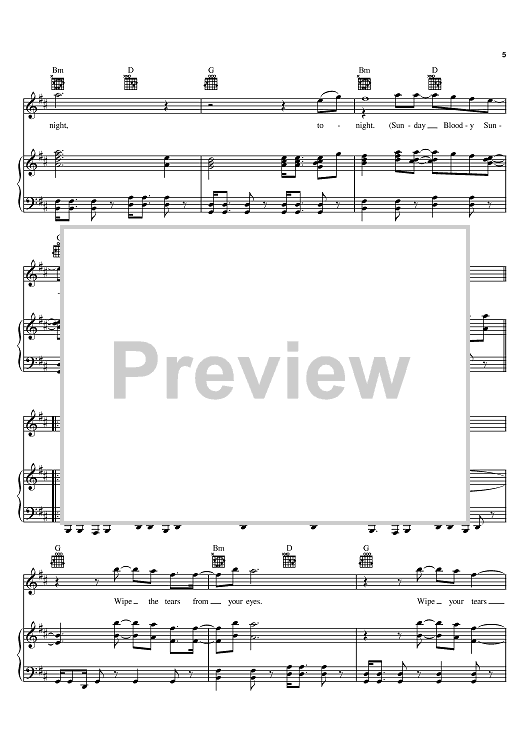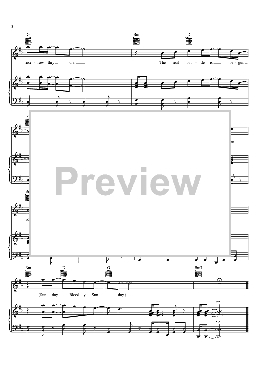 "Sunday Bloody Sunday" Sheet Music by U2