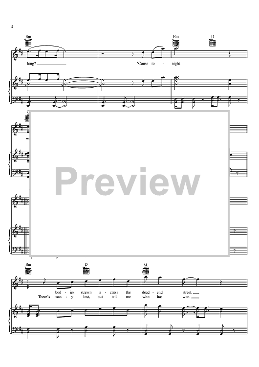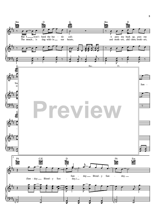Digital Sheet Music for Sunday Bloody Sunday by U2, Bono, The Edge scored for Piano/Vocal/Chords; id:382028