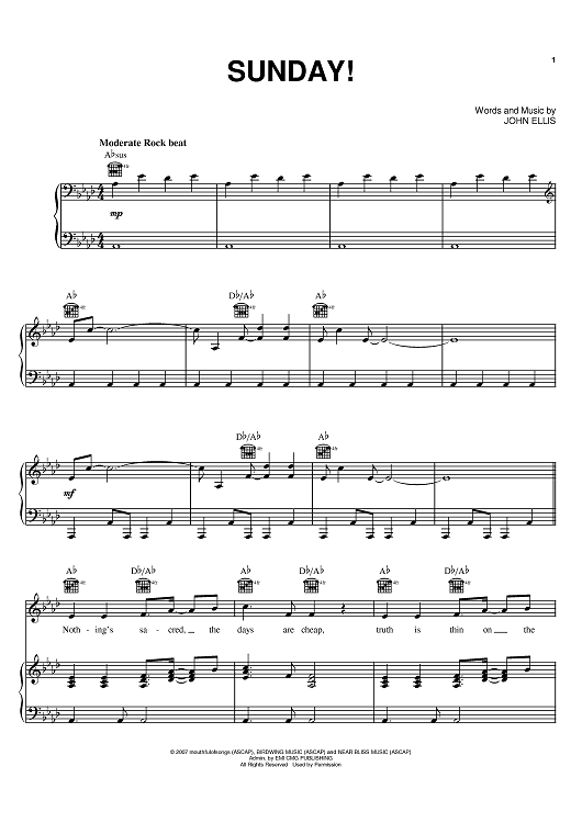 Digital Sheet Music for Sunday! by John Ellis, Tree63 scored for Piano/Vocal/Chords; id:402770