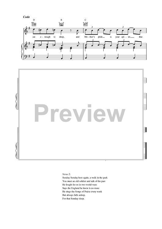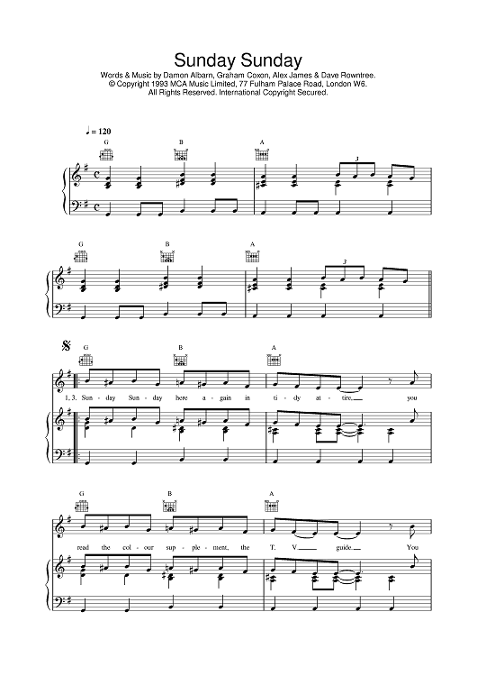 Digital Sheet Music for Sunday Sunday by Blur scored for Piano/Vocal/Chords; id:376195