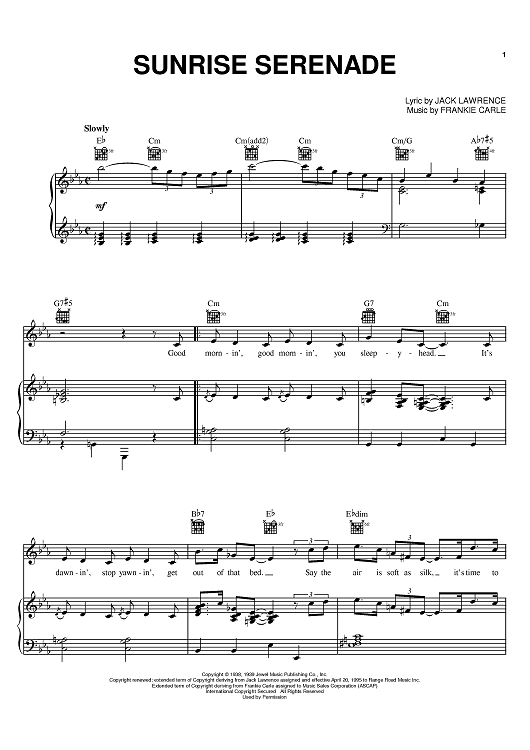 Digital Sheet Music for Sunrise Serenade by Glenn Miller, Jack Lawrence, Frankie Carle scored for Piano/Vocal/Chords; id:381077