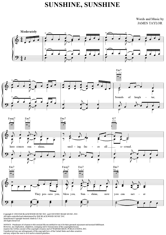 "Sunshine, Sunshine" Sheet Music by James Taylor