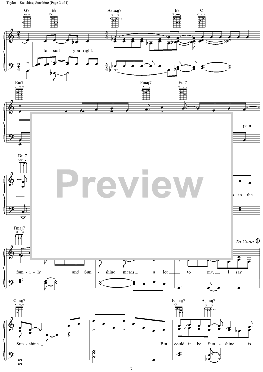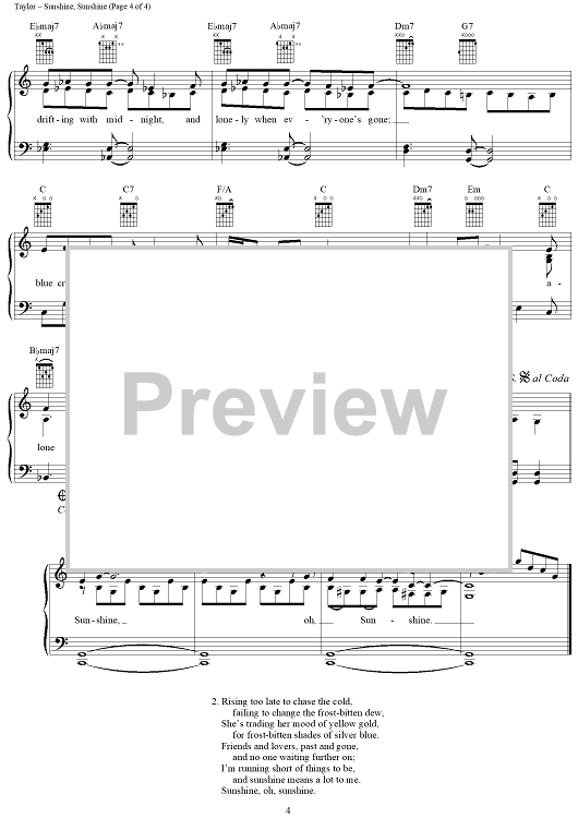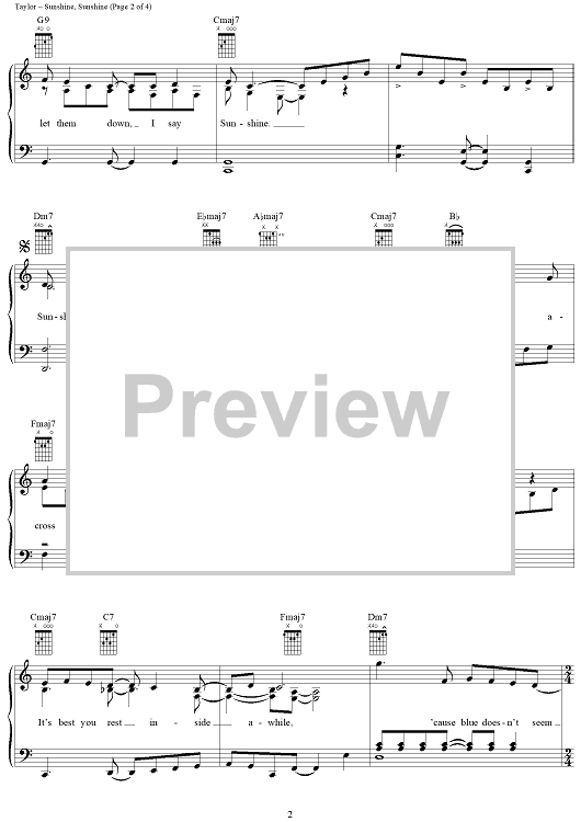 Digital Sheet Music for Sunshine, Sunshine by James Taylor scored for Piano/Vocal/Chords; id:318757