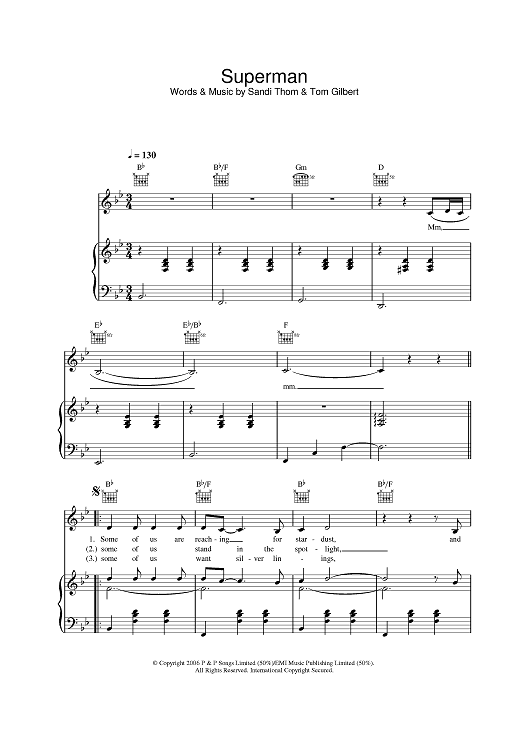 Digital Sheet Music for Superman by Tom Gilbert, Sandi Thom scored for Piano/Vocal/Chords; id:391526