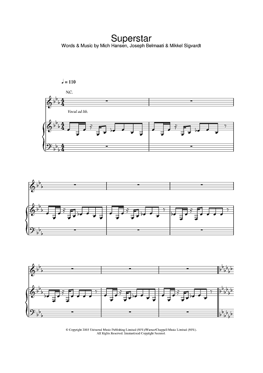 Digital Sheet Music for Superstar by Joseph Belmaati, Mich Hansen, Jamelia, Mikkel Sigvardt scored for Piano/Vocal/Chords; id:378439