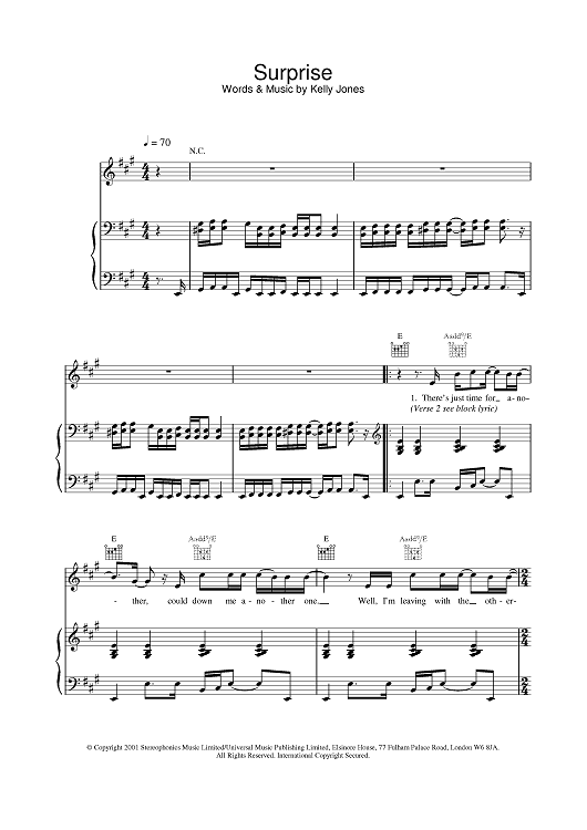 Digital Sheet Music for Surprise by Stereophonics scored for Piano/Vocal/Chords; id:377529
