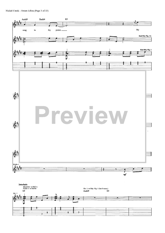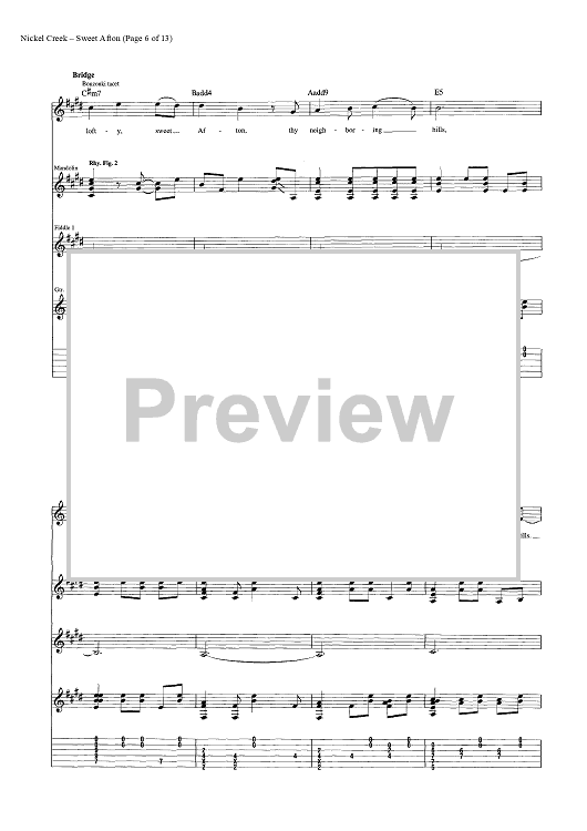 Digital Sheet Music for Sweet Afton by Robert Burns, Nickel Creek, Chris Thile scored for Guitar Tab/Vocal/Chords; id:444625