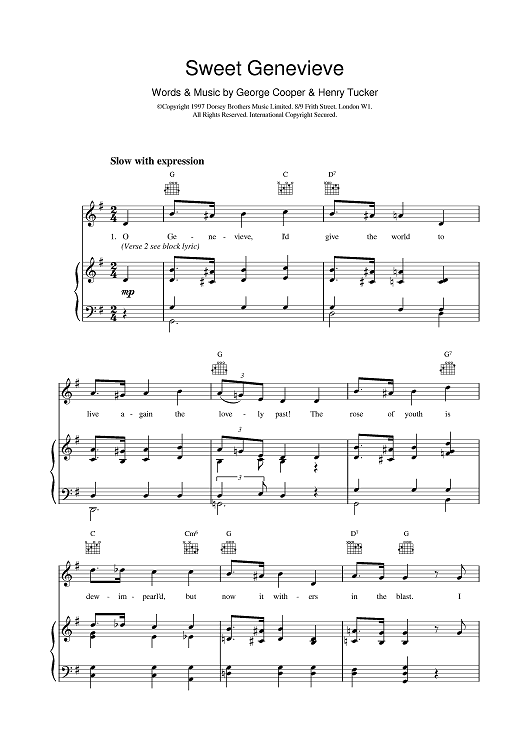 Digital Sheet Music for Sweet Genevieve by George Cooper, Henry Tucker scored for Piano/Vocal/Chords; id:379633