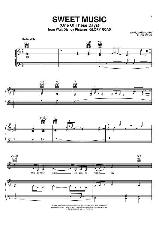 "Sweet Music (One Of These Days)" Sheet Music by Alicia Keys