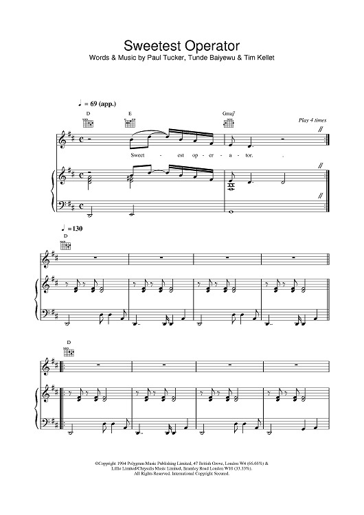 Digital Sheet Music for Sweetest Operator by Lighthouse Family scored for Piano/Vocal/Chords; id:376226