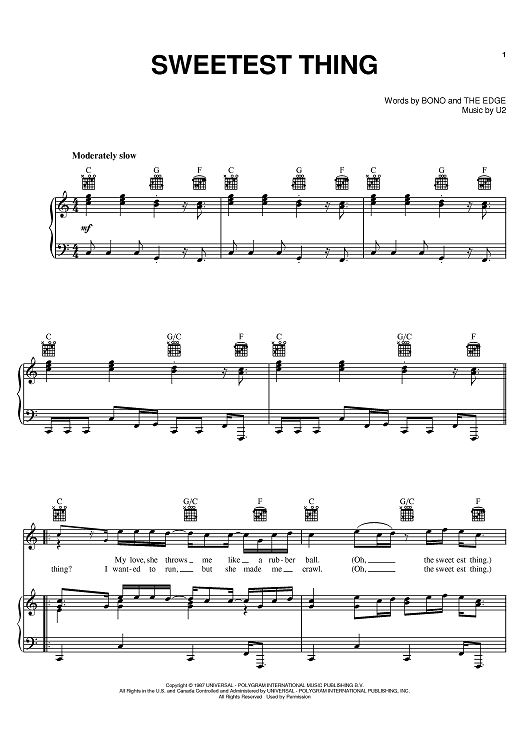 Digital Sheet Music for Sweetest Thing by U2, Bono, The Edge scored for Piano/Vocal/Chords; id:381983
