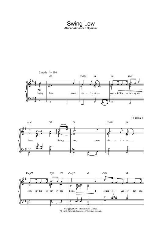 Digital Sheet Music for Swing Low by scored for Piano/Vocal/Chords; id:378590