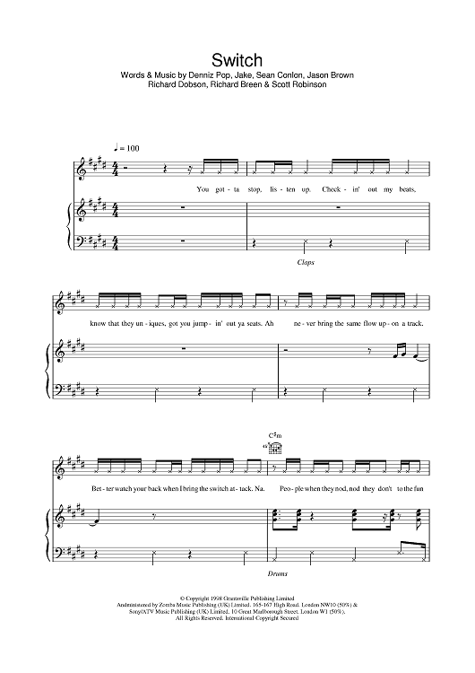 Digital Sheet Music for Switch by Five scored for Piano/Vocal/Chords; id:376706