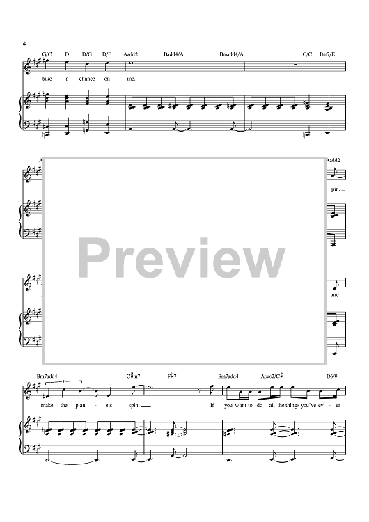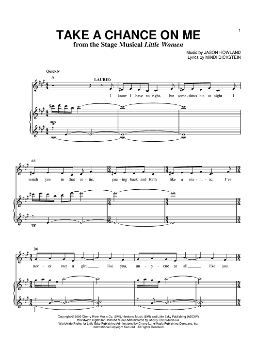 Digital Sheet Music for Take A Chance On Me by Mindi Dickstein, Jason Howland scored for Piano/Vocal/Chords; id:402917