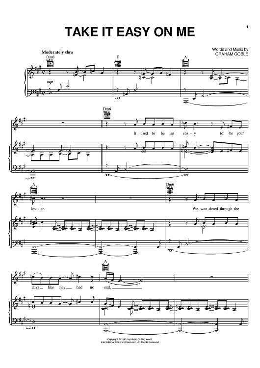 Digital Sheet Music for Take It Easy On Me by Graham Goble, Little River Band scored for Piano/Vocal/Chords; id:384017