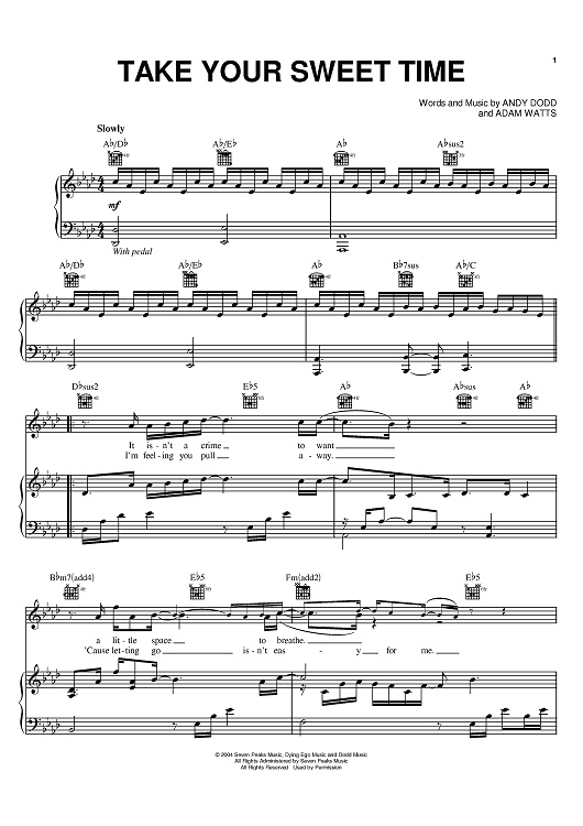 Digital Sheet Music for Take Your Sweet Time by Jesse McCartney, Adam Watts, Andy Dodd scored for Piano/Vocal/Chords; id:384095