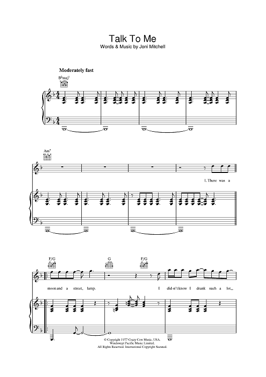 "Talk To Me" Sheet Music by Joni Mitchell