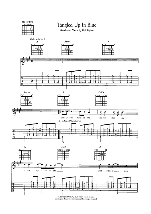 "Tangled Up in Blue" Sheet Music by Bob Dylan