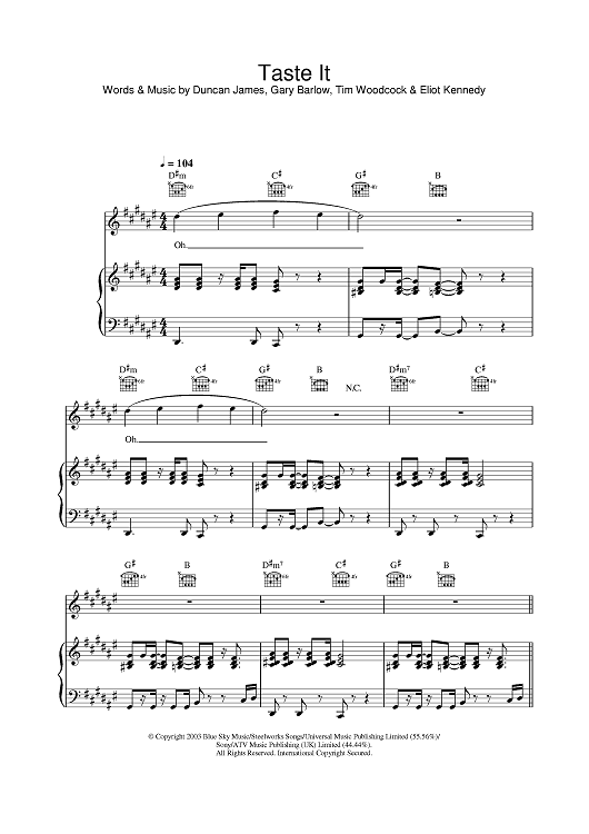Digital Sheet Music for Taste It by Blue scored for Piano/Vocal/Chords; id:378272