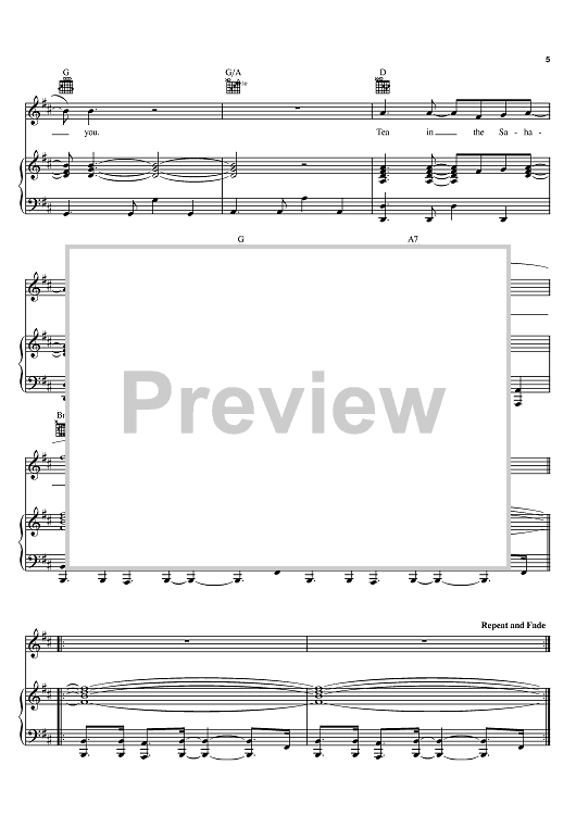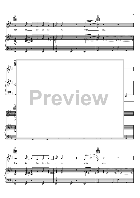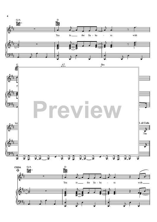 Digital Sheet Music for Tea In The Sahara by Sting, The Police scored for Piano/Vocal/Chords; id:398619
