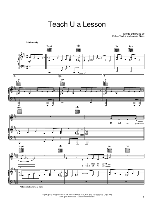 Digital Sheet Music for Teach U A Lesson by James Gass, Robin Thicke scored for Piano/Vocal/Chords; id:401827
