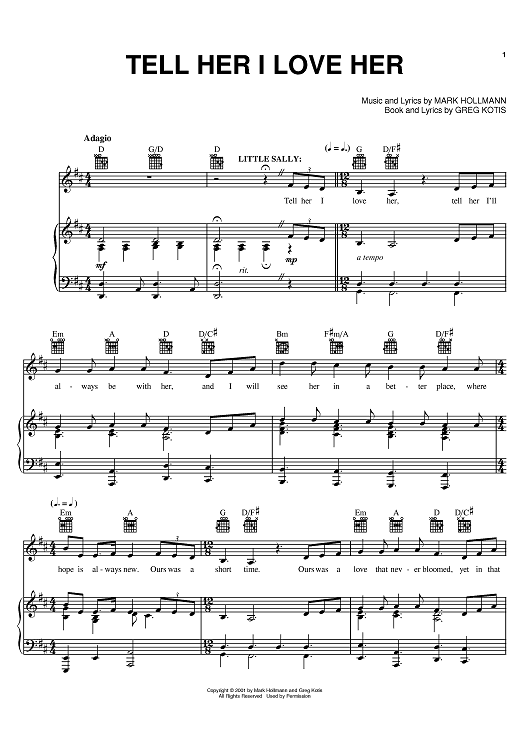 "Tell Her I Love Her" Sheet Music by Mark Hollmann