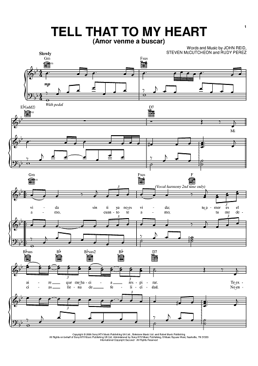 Digital Sheet Music for Tell That To My Heart (Amor Venme A Buscar) by John Reid, Rudy Perez, Il Divo, Steven McCutcheon scored for Piano/Vocal/Chords; id:397500