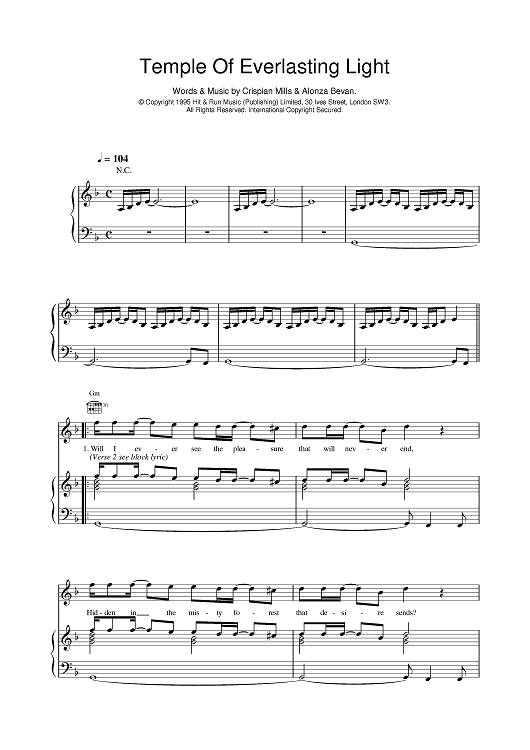 Digital Sheet Music for Temple Of Everlasting Light by Kula Shaker scored for Piano/Vocal/Chords; id:376261